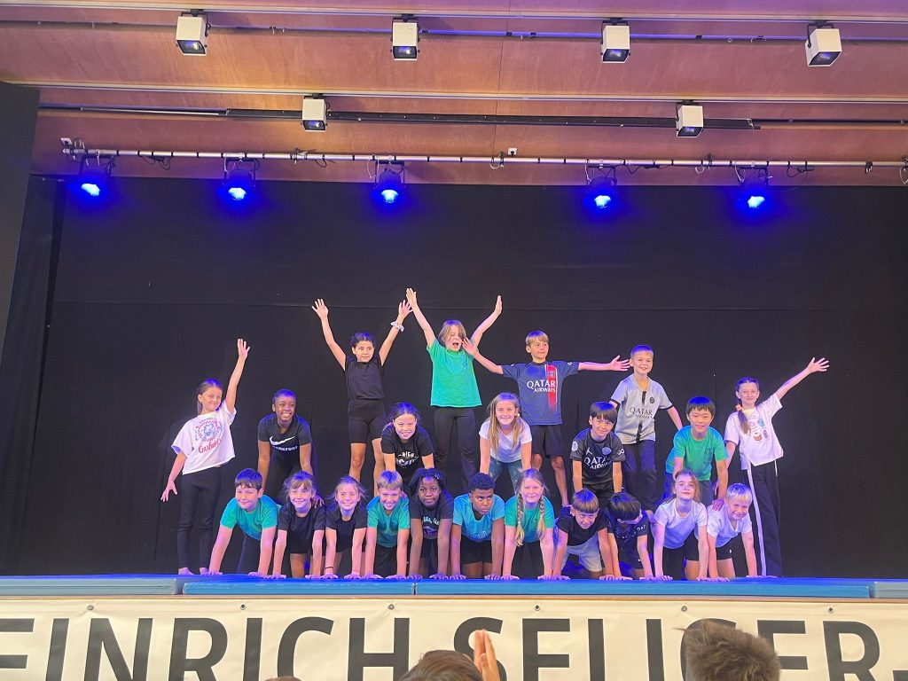Mit einer Akrobatik-Nummer zeigte die Klasse 4a, was wir alles hier so lernen. Menschen-Pyramiden zu bauen erfordert nicht nur Kraft und Koordination, sondern auch einen Teamgeist.