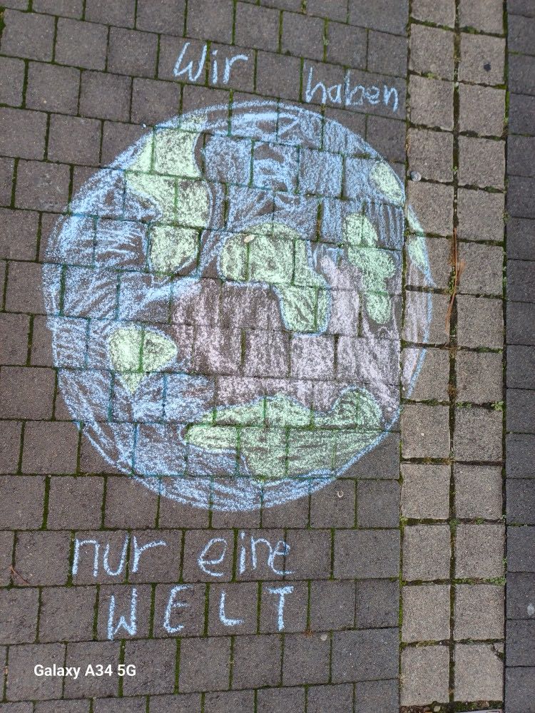 Zum Abschluss gestalteten die Kinder den Platz an der U-Bahn-Haltestelle im Dornbusch mit bunten Kreidebildern rund um Umwelt und Nachhaltigkeit. Die Zeichnungen sollten Passantinnen und Passanten zum Nachdenken anregen – ein gelungenes, farbenfrohes Zeichen für gemeinsames Engagement.
